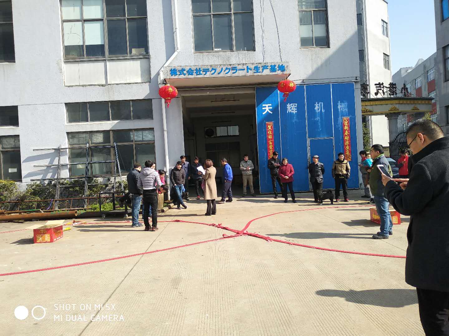 2018年正月初八,風和日麗,寧波天輝機械有限公司的大部分員工都已到廠到崗。門前擺著8字鞭炮,9點58分,鞭炮禮花共鳴,昭示著新的一年業績紅紅火火,發發發!