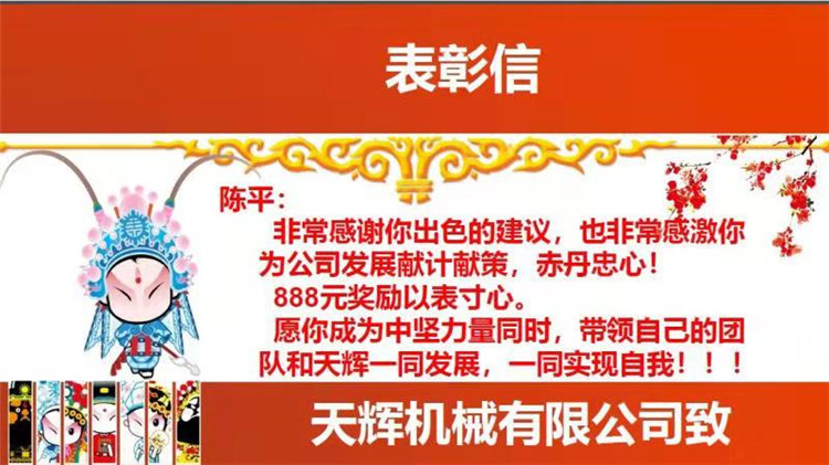 陳平先生是質量部經理,已在天輝機械工作10年以上!今天他為公司管理提了一個很好的建議,老板很開心,獎勵他RMR888.00以茲鼓勵!希望每一個天輝人都能像他一樣,具有主人翁精神,提更多具有建設性的建議!