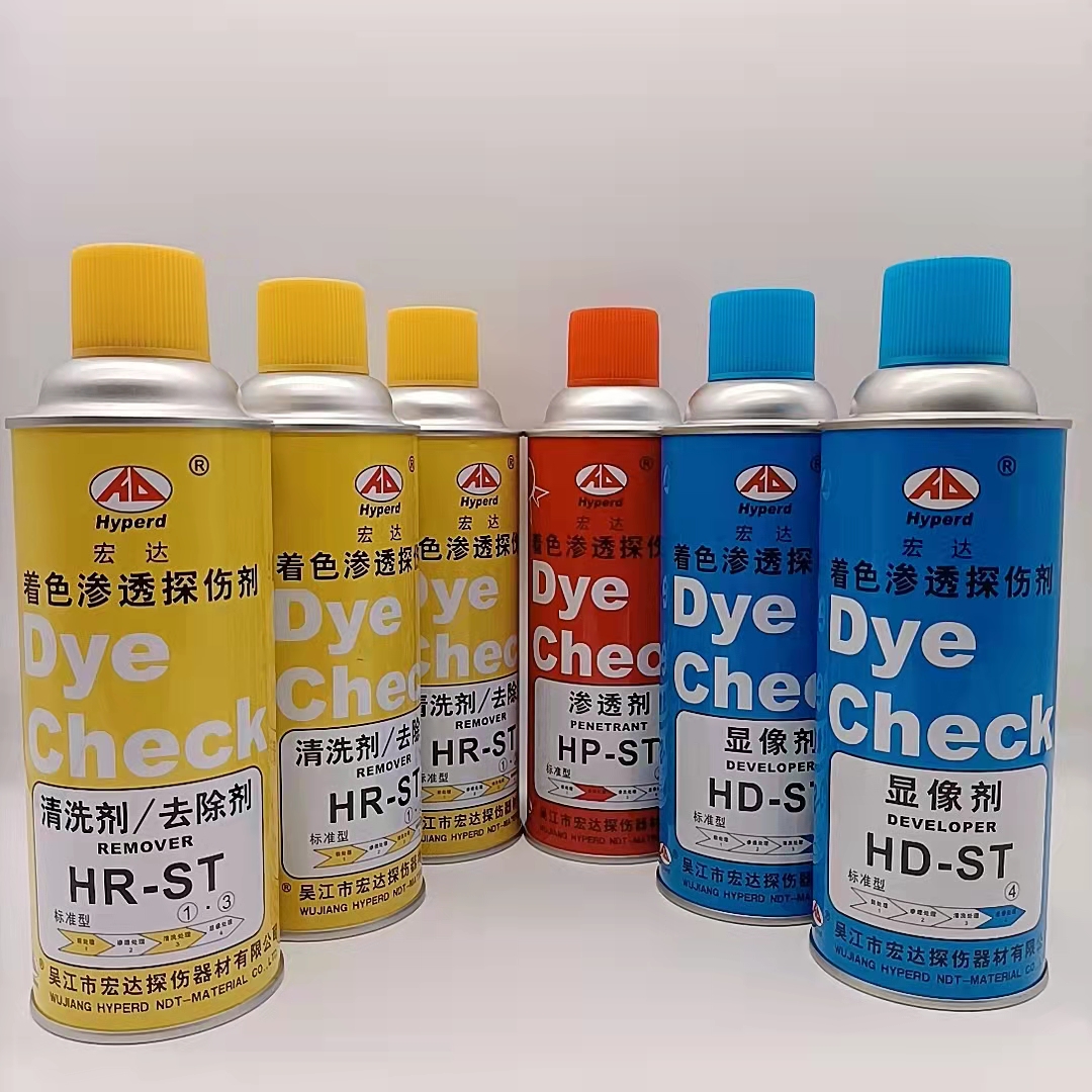 著色探傷的基本原理:用著色劑涂在材料的表面,著色劑滲入受損部位。放置一段時間后將表面的著色劑沖洗掉。在已經清洗干凈的表面涂上顯影劑,損傷部位由于著色劑滲入其中從而看得一清二楚。主要利用毛細現象使滲透液滲入缺陷,經清洗劑清洗使表面滲透液清除,而缺陷中的滲透液殘留,再利用顯像劑的毛細管作用吸附出缺陷中殘留的滲透液而達到檢驗缺陷的目的