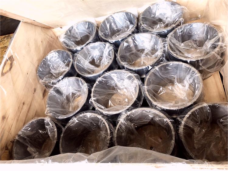 對于精密加工的鋼件襯套包裝,直徑260以上,內錐,產品凈重25KG以上,我們通常發貨前會再次做表面全檢,然后噴上防銹液,套袋,擺放木箱中,每層加隔板,外箱采用的是加厚夾板箱,確保產品不會在運輸途中撞傷碰傷。