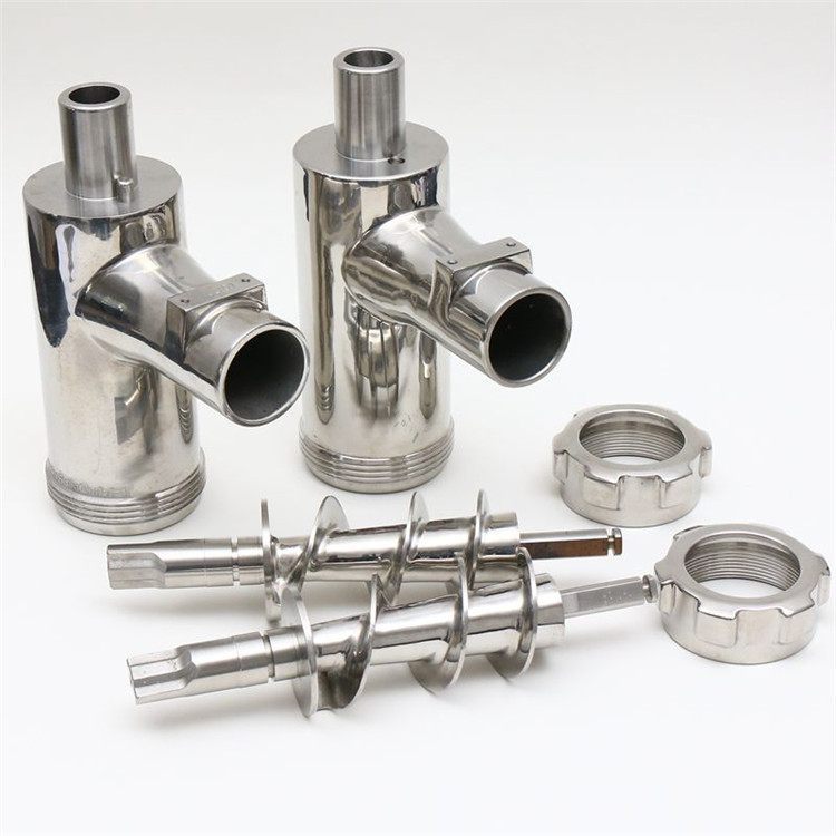 天輝根據客戶圖紙或樣品定制生產不銹鋼絞肉機配件,包括不銹鋼絞肉機殼體、不銹鋼絞肉機蓋、不銹鋼絞肉機蝸桿。材質為食品級不銹鋼。工藝為硅溶膠精密鑄造及精密加工,可根據客戶要求進行激光打標/激光鐳射。